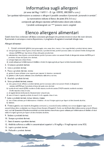 corrisponde agli allergeni riportata sull’informativa clienti sotto indicate .